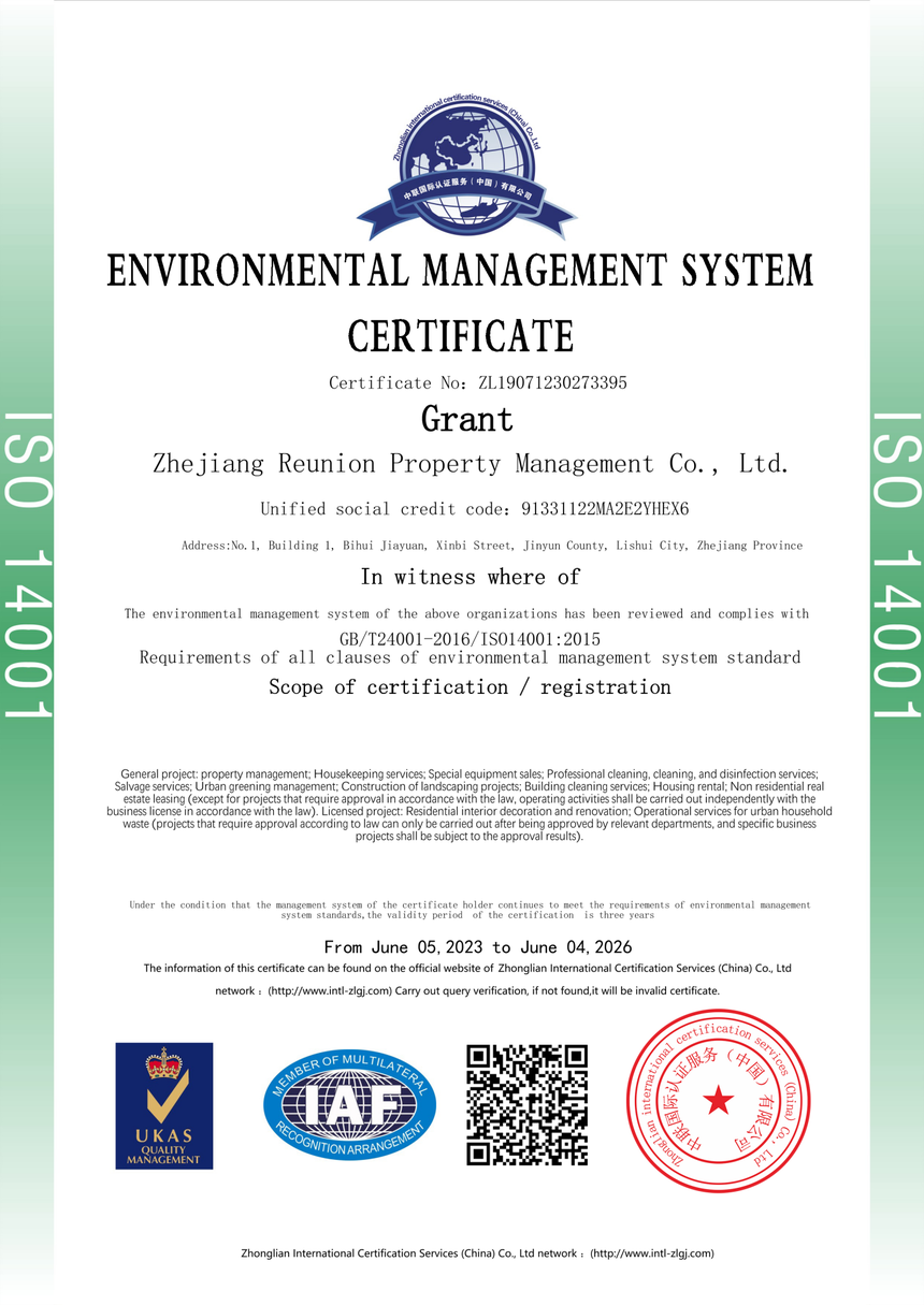 首页 >> 企业资质 >>资质案例 >> 环境管理体系认证证书