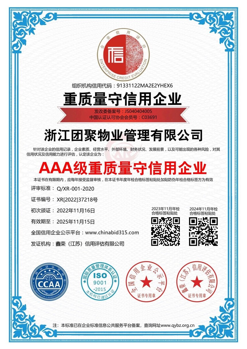 AAA级重质量守信用企业